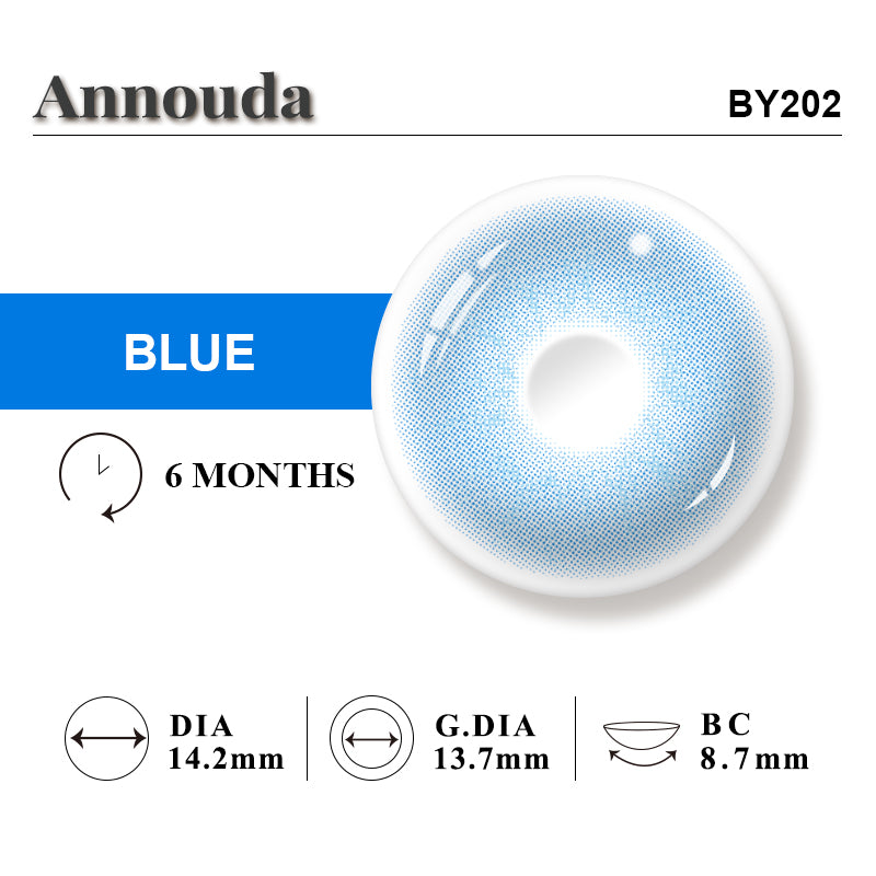 The blue gradient design transitions from deep sapphire at the edge to soft pearl-blue toward the pupil, adding dimension and inner light that enhances your natural eye color.